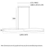 AREZZO 240 PENDANT 80wLED 3000K cab2m DIM ANTIGLARE H140 L2400 W70 8690Lm CRACKED BLACK