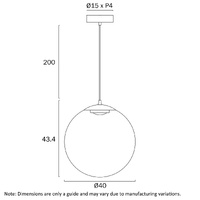 AURORA 40 PENDANT 15wLED 3000K DIM D400 H435 780Lm cab 2M BLACK MATT/ RAINBOW