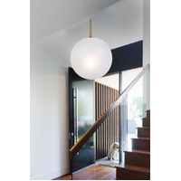 The Bally pendant is the essence of pure and simple lighting design. The sphere is finely blasted opal glass resembling the surface of fresh snow. The rounded shape is continued with the minimal metal gallery. A short metal stem finishes the story of mid-century modernism. Available in 4 sizes and 3 metal finishes.