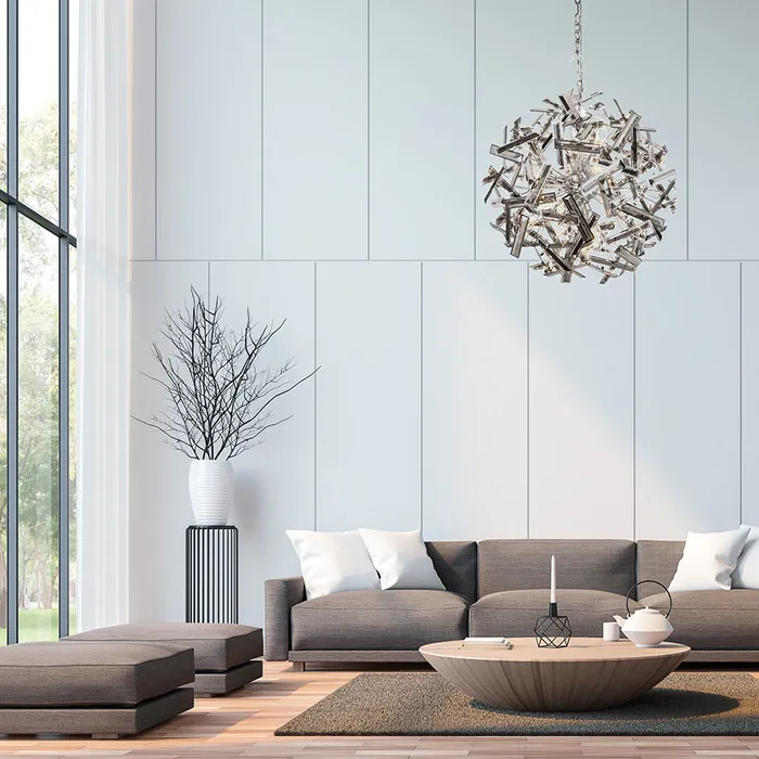 Brazza is new Crystal lighting range that features close to ceiling lights as well as round pendants lights available in three sizes.