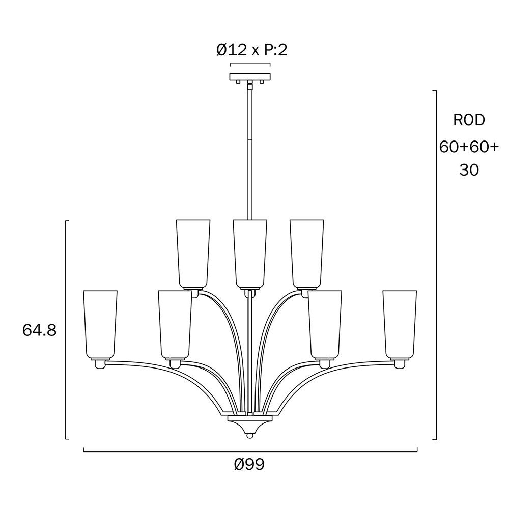 - Lamp Base: 9 x E27 / ES Edison Screw