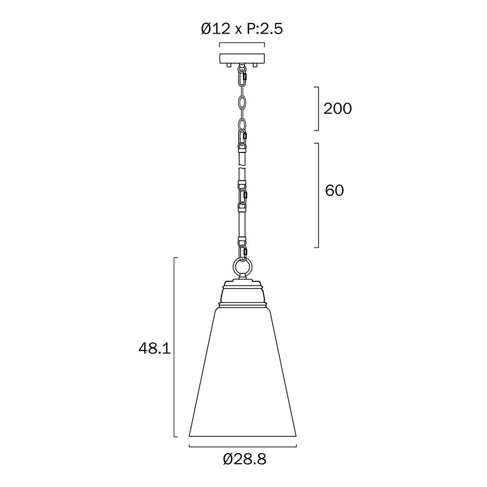 BRINE 28 PENDANT 25wE27max D288 H481 ROD3*200+CHAIN 2m BLACK MATT / OPAL
