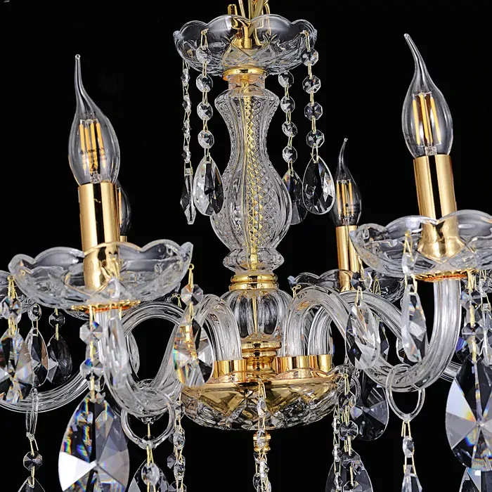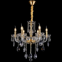 New classic, elegant design crystal chandelier range featuring gold finish metal frame with clear crystals, adding a touch of luxury to any space.