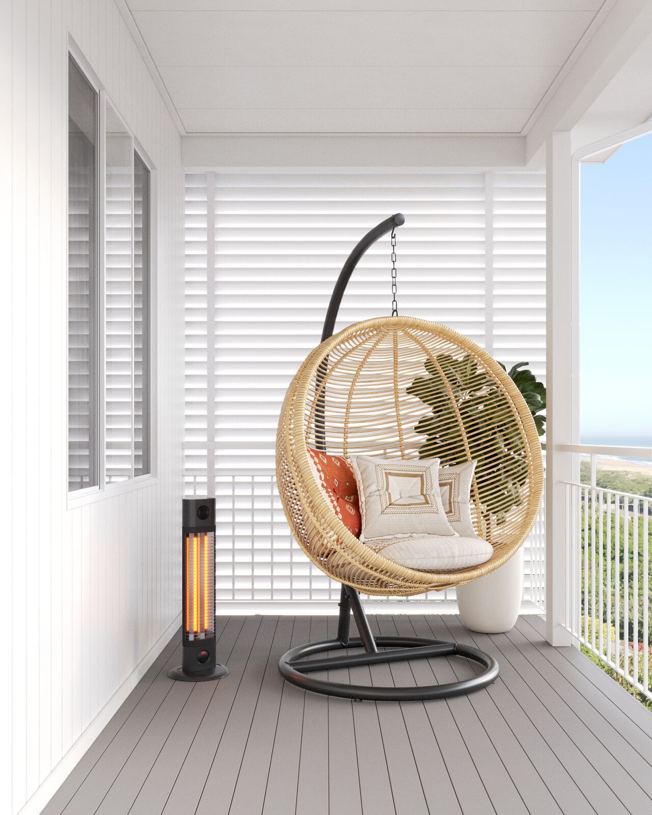 The Cedar Outdoor Heater offers the perfect blend of rapid heating and ultimate portability. Its lightweight design and built-in carry handle allows you to effortlessly move the warmth to any area of your home, patio, or workshop.