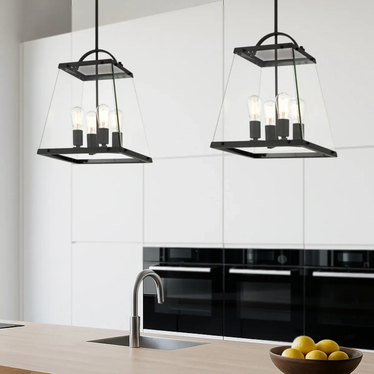 COLAIR 4 LIGHT SOLID BRASS PENDANT 4x25wE27max L:350H:450 BLACK / CLEAR