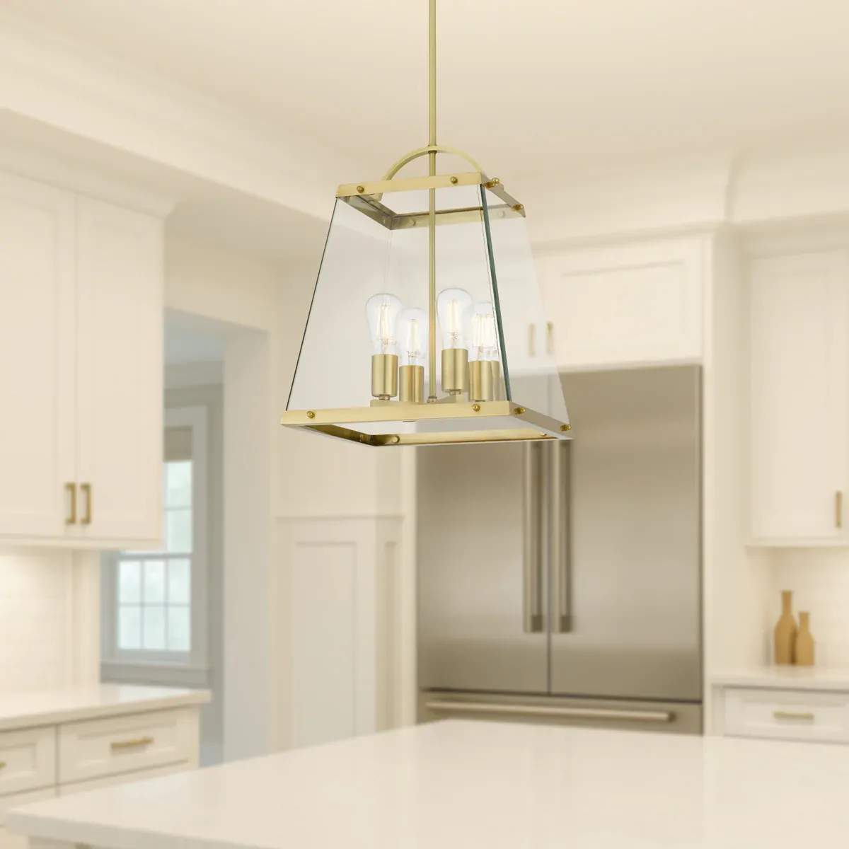 COLAIR 4 LIGHT SOLID BRASS PENDANT 4x25wE27max L:350H:450 BRASS / CLEAR