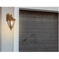 DELFINO EXTERIOR WALL BRACKET 25wE27max P:240 H:405 W:180 - IP44 GOLD/FROST GLASS