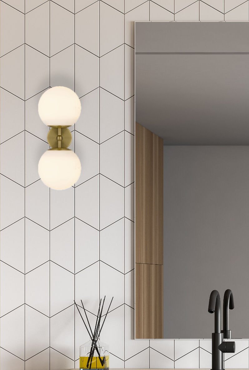 Twin glass spheres create a bold offset and a very contemporary feel.