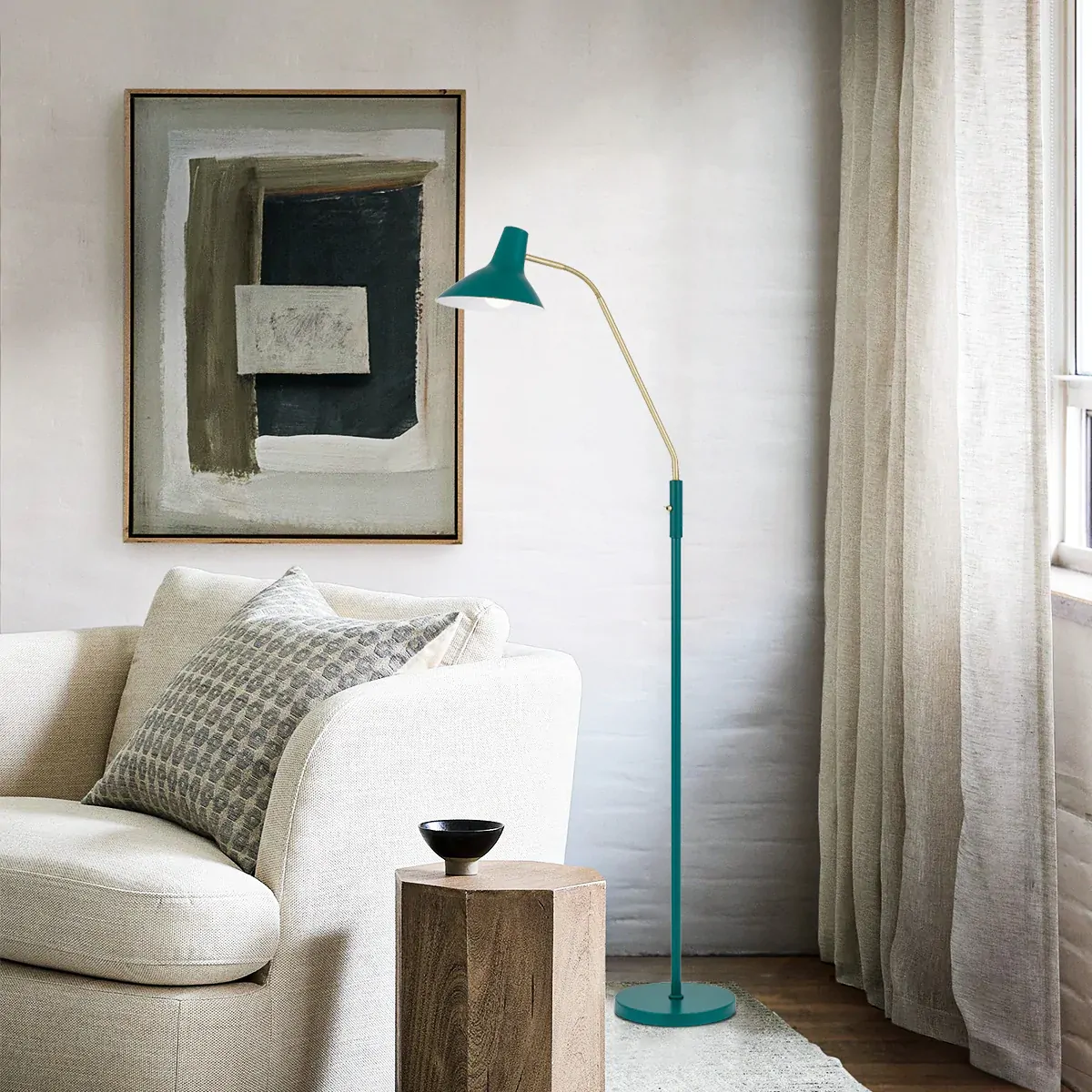 The Farbon floor lamp is a great portrait of mid-century modernist style.