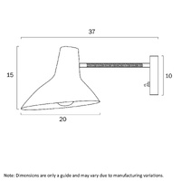 FARBON SHORT WALL BRACKET 25wE27max L:370 D:200 WHITE/ BRASS MATT/WHITE ROCKET SWITCH
