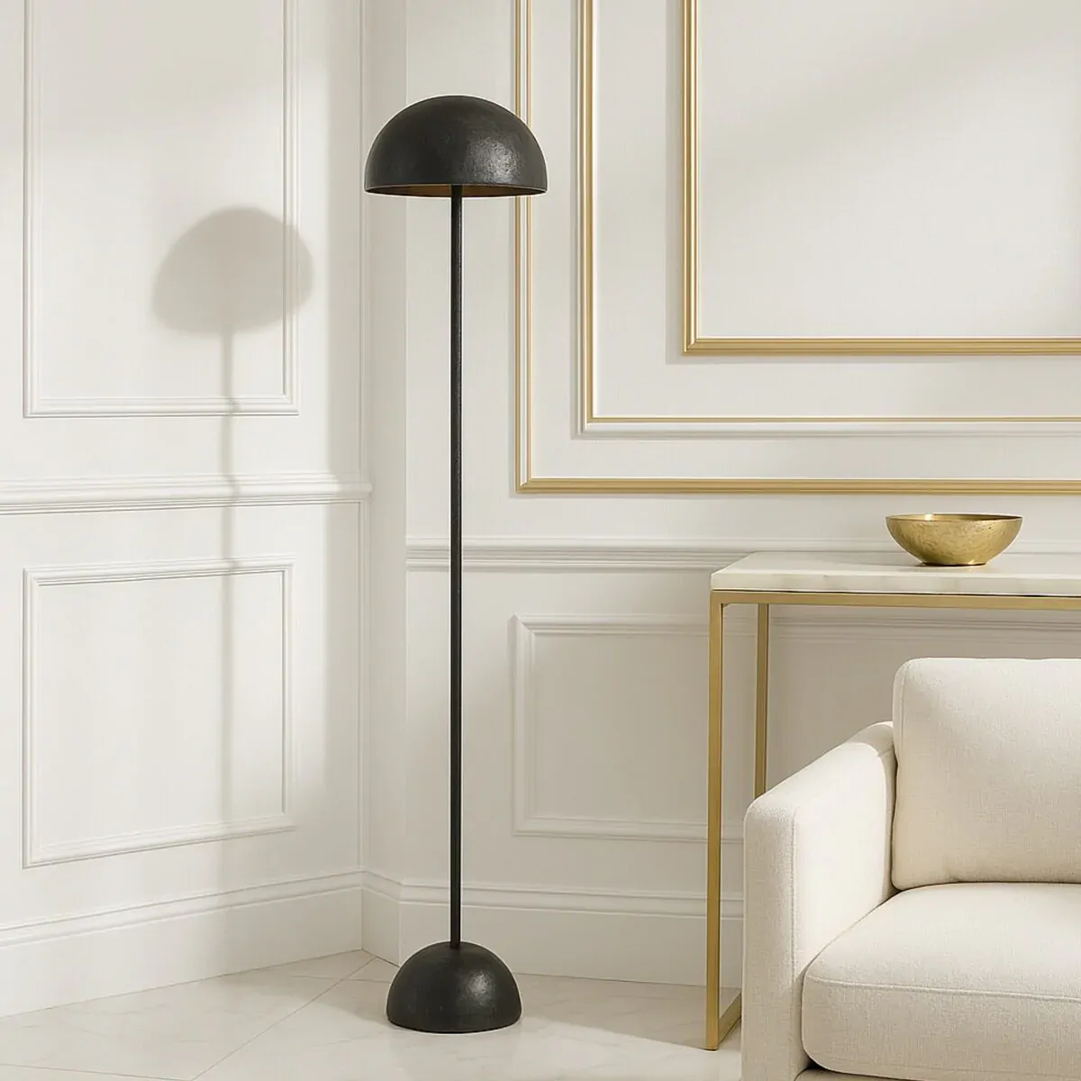 The Ferum range of floor lamps and table lamps presents a captivating fusion of strength and elegance. Crafted from iron and adorned with a distinct patina finish, these lamps boast a striking dome shape and fluid curved lines. Available in black and rust, the Ferum is a standout addition to any space.