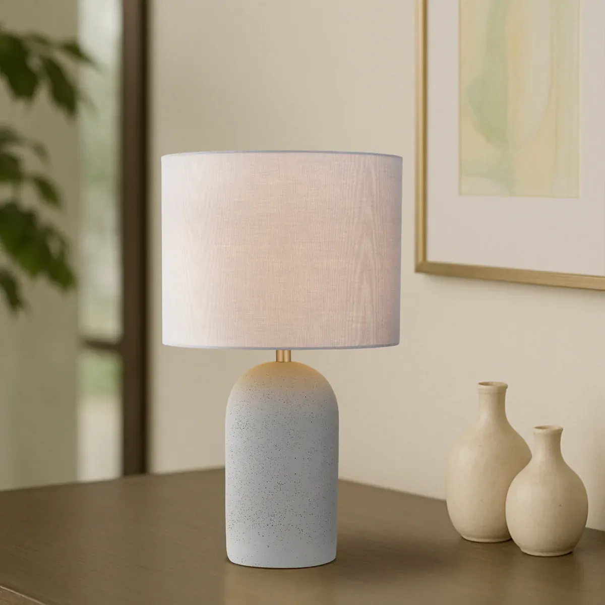 The FEVIK table lamp is a modern and on-trend lighting option for any room in your home. This lamp is available with a terrazzo or concrete base, adding a touch of industrial and minimalistic style to the design. The matching fabric shade provides a warm, diffused light, making it perfect for reading or relaxing. The lamp comes in two different sizes, allowing you to choose the one that best fits your space. With its unique combination of materials and design, the FEVIK table lamp is sure to be a stylish and functional addition to any room in your home, whether it's a living room, bedroom or office. Upgrade your space with this contemporary and stylish lamp.
