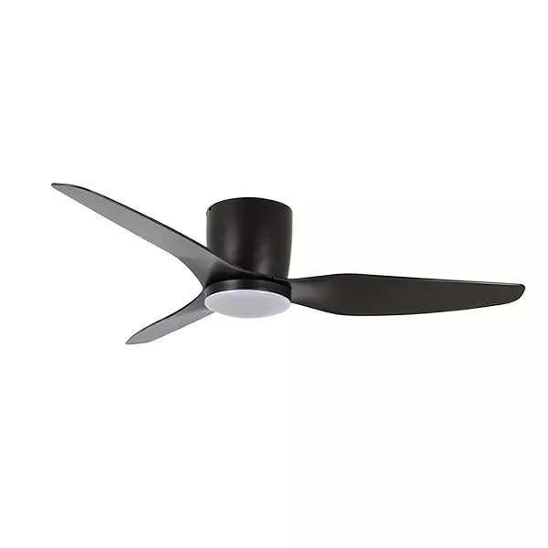 Flush Close to Ceiling 3 Blade 1250mm Hugger Ceiling Fan with 15w LED Light Tricolour Matt Black
