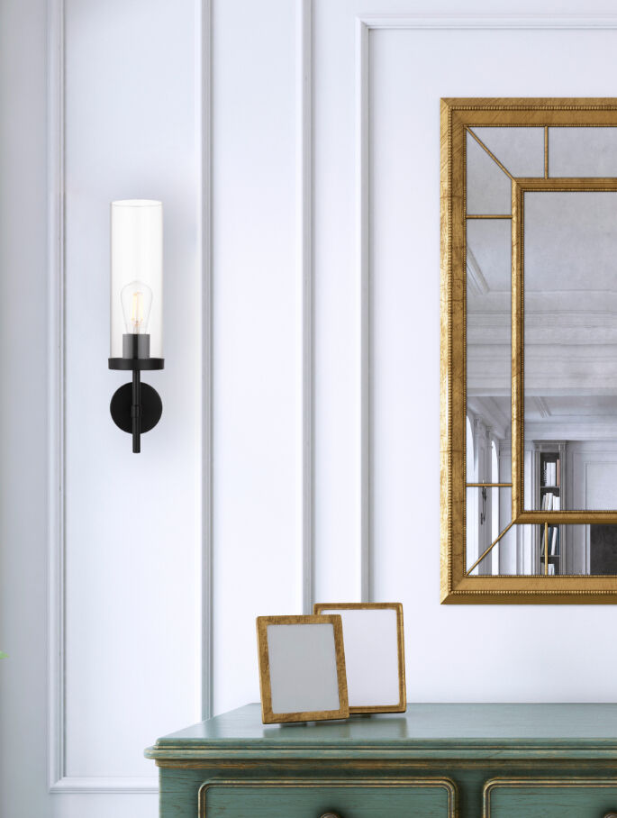 GAROT WALL LAMP 25wE27max D:90 H:450 P:120 BLACK / CLEAR