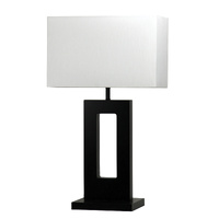 Habitat timber base supplied with a pearl shantung, rectangular lamp shade.