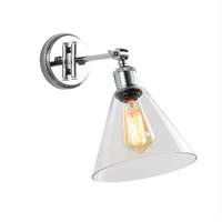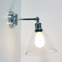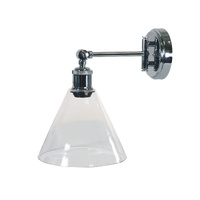 The Heath metal wall light features a swing arm and tapered clear glass shade. Supplied without a bulb, this fitting requires one E27 bulb.