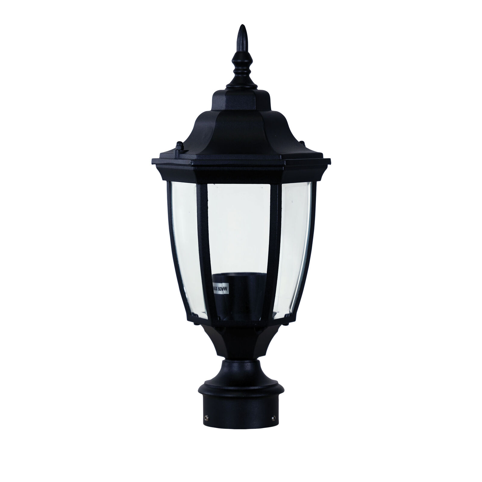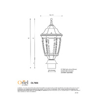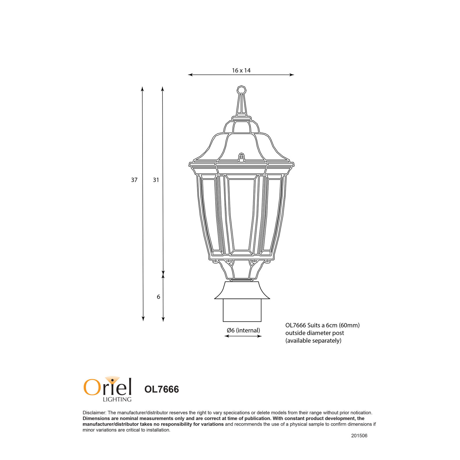 HIGHGATE traditional outdoor post top complete with 60mm fitter. Powder coated aluminium, in a matt black finish, with six clear, bevelled glass panels. Designed to suit our 60mm (outer diameter) posts (OL7051 & OL7050).