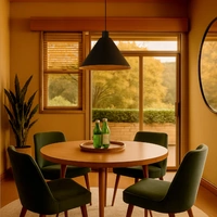 The Kestra pendant features a conical shape with a subtly textured iron surface, adding a sophisticated touch to any room.