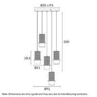 A sculptural 5-light pendant featuring cast-stone shades suspended at varying heights