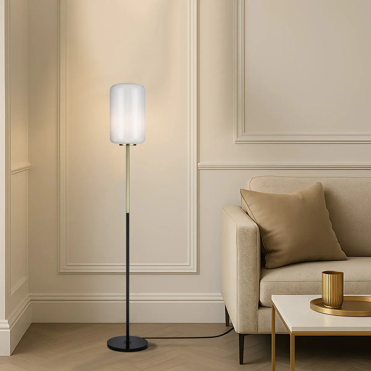 Add a premium finish to your scheme with the elegant and delicate look of blown glass. The KOROVA is a slender floor lamp, perfect for any small space.
