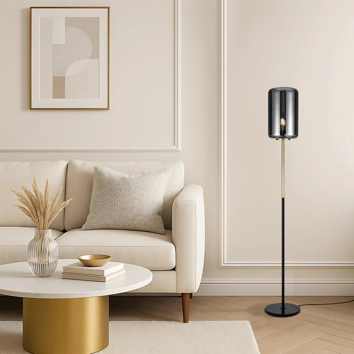 KOROVA FLOOR LAMP 25wE27max H:1520 D:210 BRASS MATT/BLACK MARBLE/SMOKE