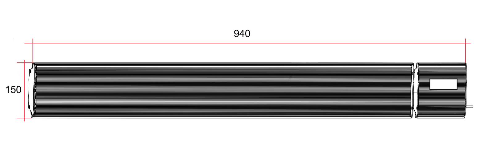 Lotus 1200W Wall Mounted Outdoor Heat with Remote & Wi-Fi 940x150x215mm - Black