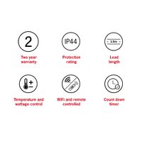 The Lotus Outdoor Heater LO1200WB is a silent heating solution, perfectly engineered for indoor and protected outdoor spaces. Using advanced long-wave infrared technology it delivers gentle, ambient warmth that heats the room, not just the objects in it. The LO1200WB features a sleek, slimline design and a robust powder-coated aluminium frame with an IP44 rating. Suitable for wall or ceiling mounting.