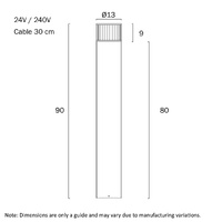 MALABO LED BOLLARD 240V/ 24V 12w LED 3000K D:130 H:900 IP65 cab. 30cm GREY SAND