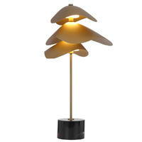 The Mapel table lamp features an antique‑brass–coloured finish with a solid black marble base. Its layered shades create a warm, atmospheric 3000K glow from the integrated LED. A touch‑dimmer on the switch allows effortless adjustment, making it a stylish modern accent for ambient lighting.