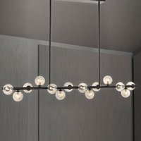 The Moran pendant will add elegance and style to your living space. This linear suspension is simple and striking, with just the right mix of mouth blown glass shades positioned around the central body. Available as an extra long horizontal 18 light or 14 light or 9 light or a vertical 3 light pendant. 3 colour combinations.