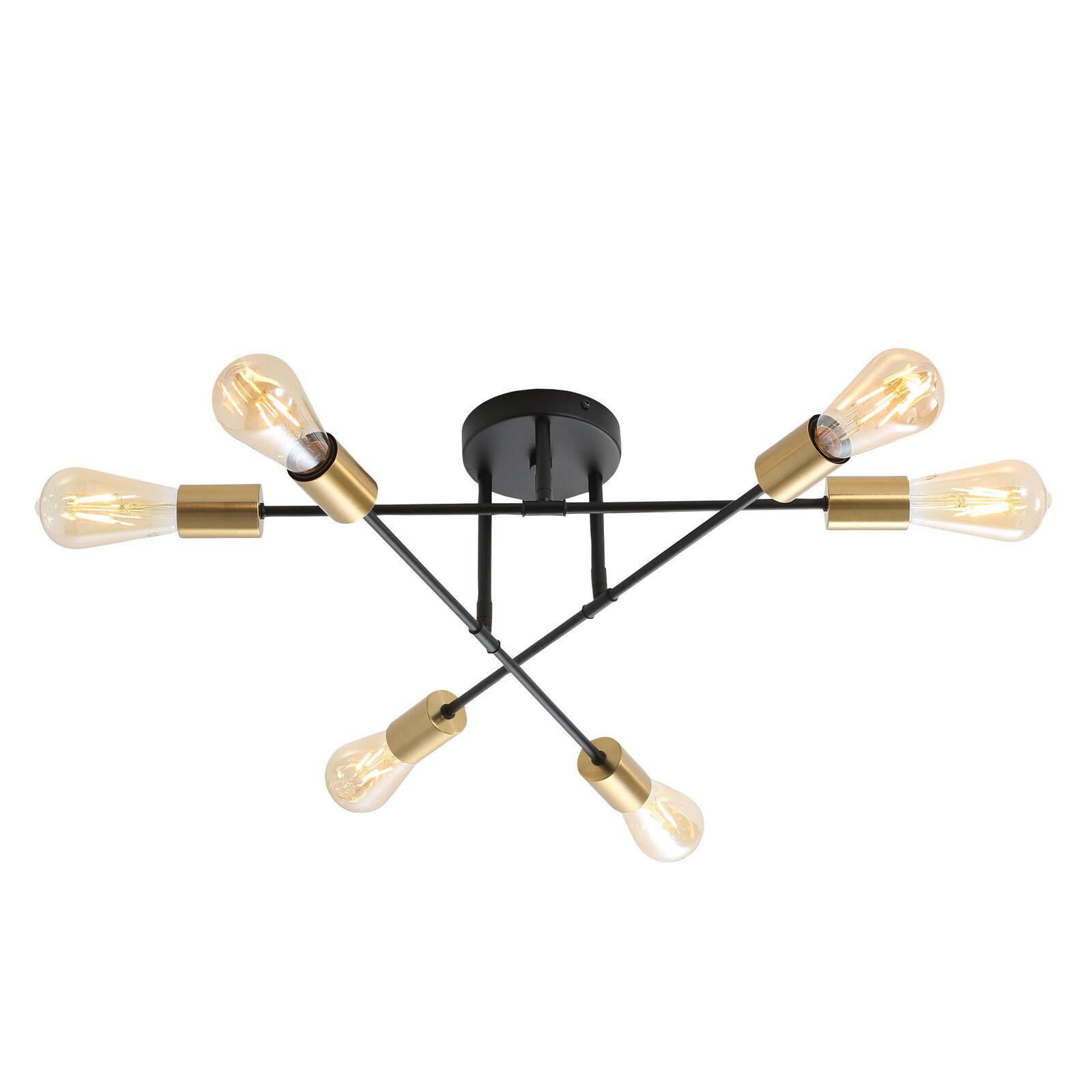 MUNA CTC, a stylish functional feature light which looks great in living rooms and dining rooms with a low ceiling height. Satin Brass lamp holders with a painted black body, swivel joint located at the centre of the arms. For a more traditional art deco style, use opal matt globes or, if you prefer a contemporary modern look, we recommend using clear filament globes (globes sold separately).