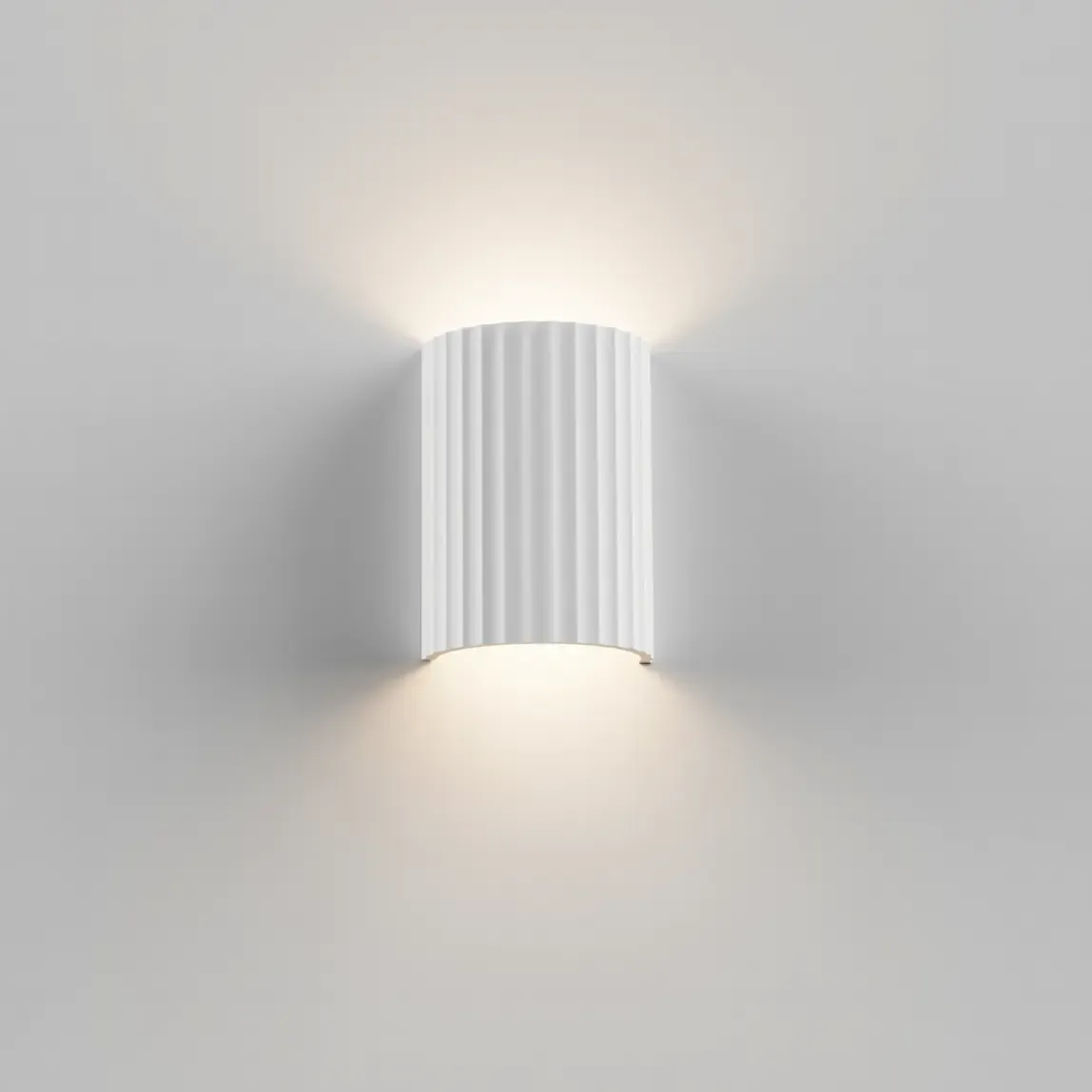 The unique ribbed gypsum construction adds sophisticated texture and visual depth while maintaining clean, contemporary lines. This detailing creates beautiful light and shadow patterns that enhance the sculptural quality of each piece, adding architectural interest even when the lights are off.