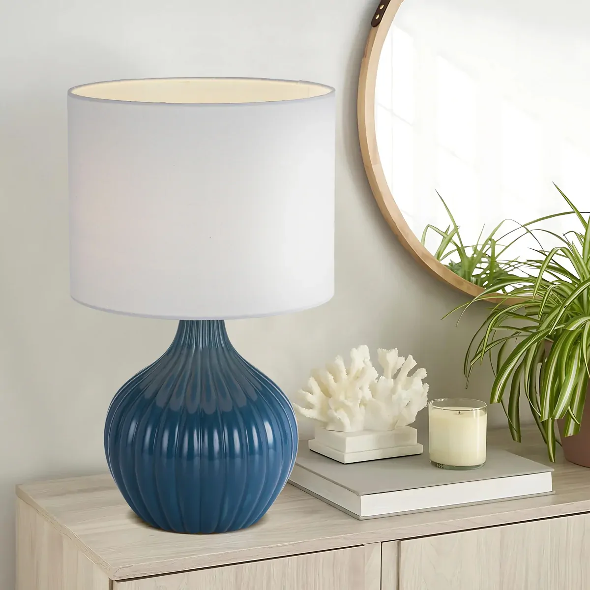 The Nord table lamp looks great on the bedside table, on a dresser in the hallway, or on the window ledge in the living room. The fabric shade compliments the ribbed ceramic base and provides cosy lighting with a warm feel. Available in 3 colour combinations.