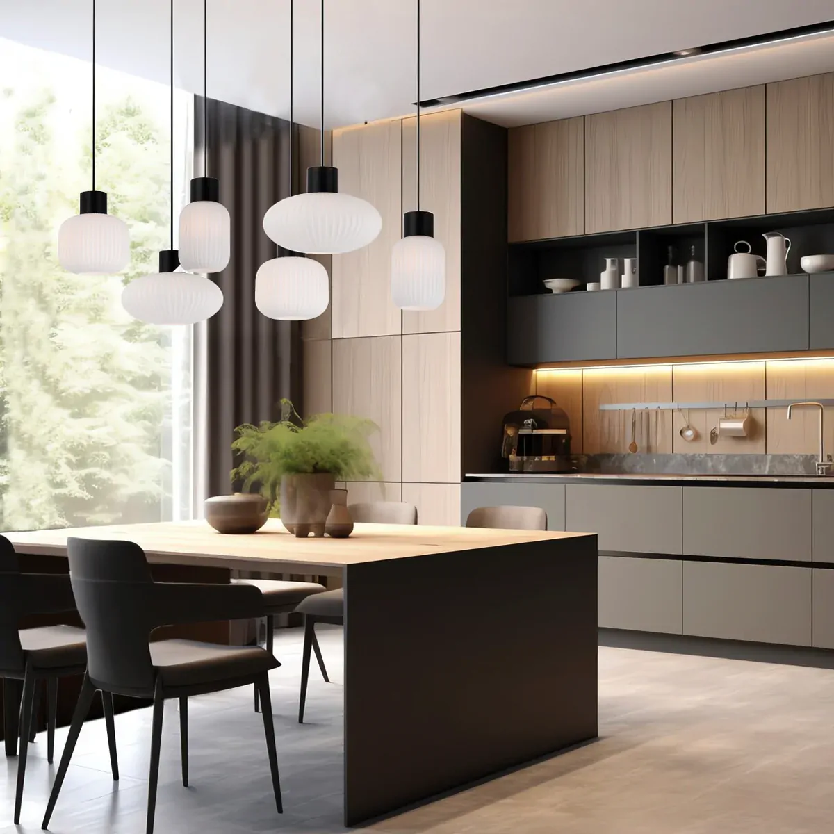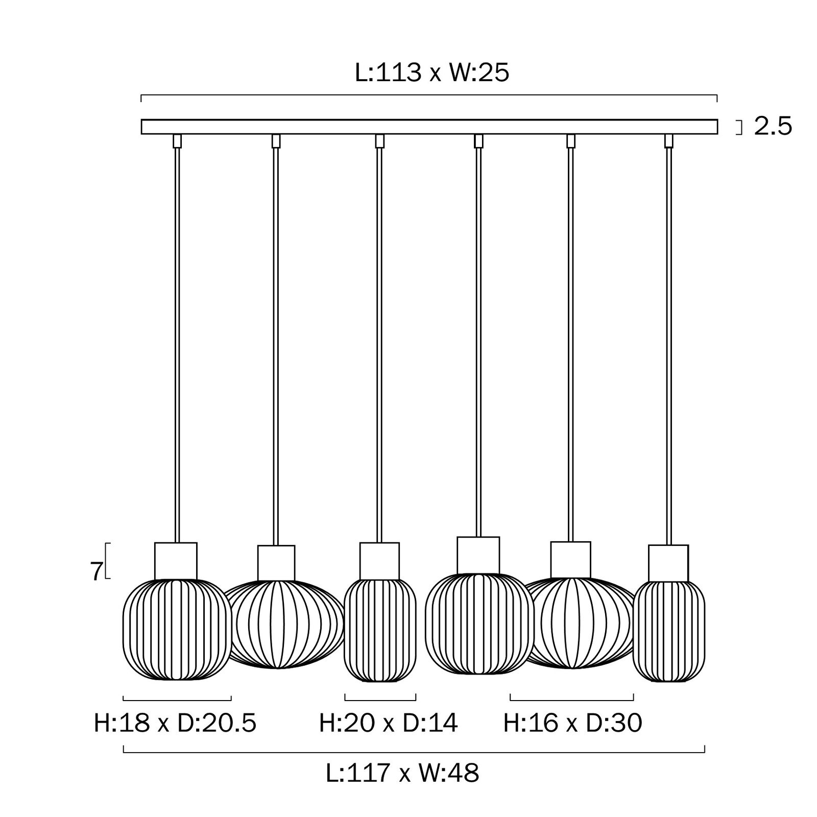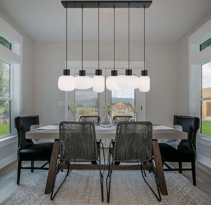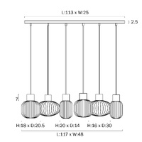 NORI 6 LIGHTS PENDANT 6x25wE27 D1:140H1:205 D2:200H2:180TEX2m D3:300H3:170BLK MATT/OPAL MATT