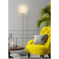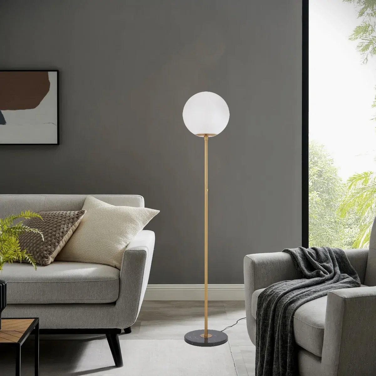 The Oliana floor lamp is elegant and ultra simple in design, suitable for any contemporary interior space. The glass is mouth-blown alabstro and supported on top of hand polished antique gold metalware which has a centrally located switch for ease of operation. A black marble base supports the complete structure.