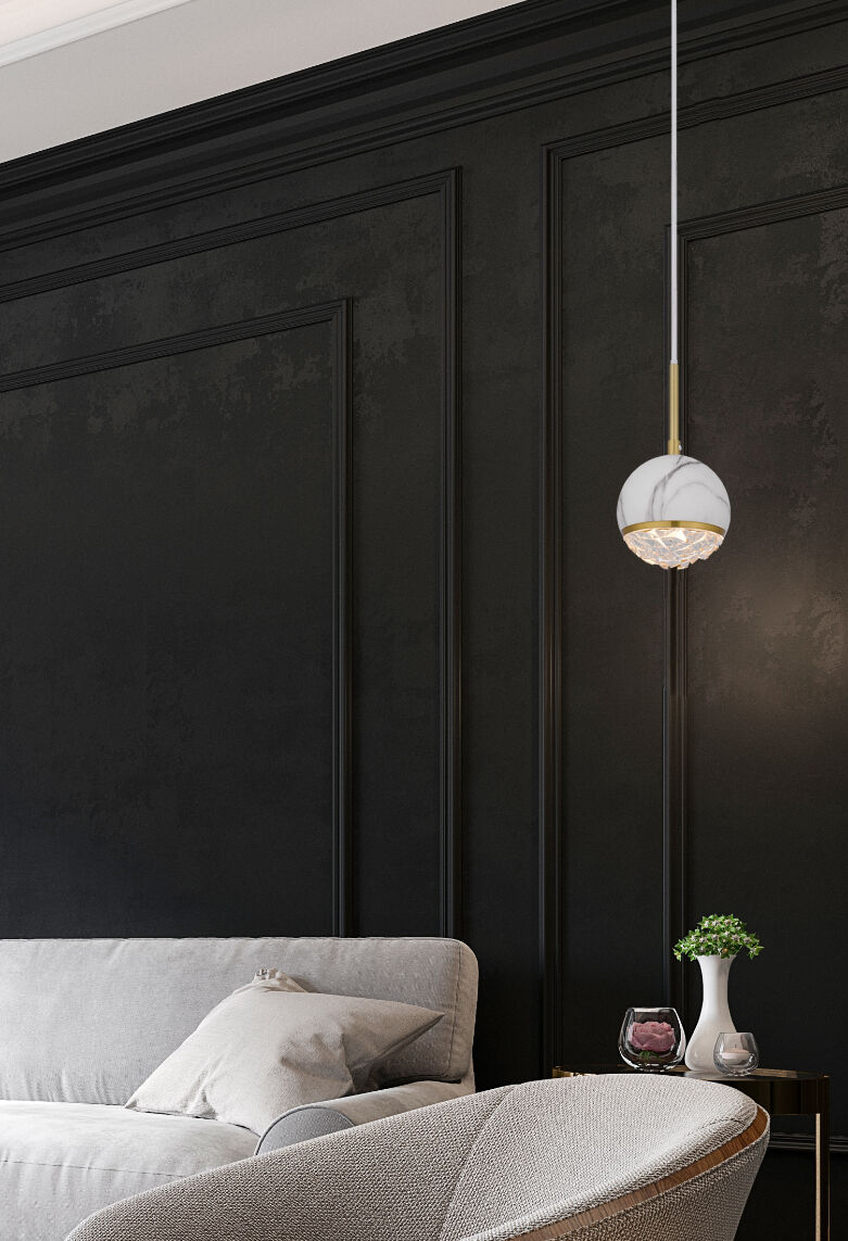 ONETA 1 PENDANT 6wG9max not incl D110 cab:2m WHITE MARBLE LOOK / CLEAR