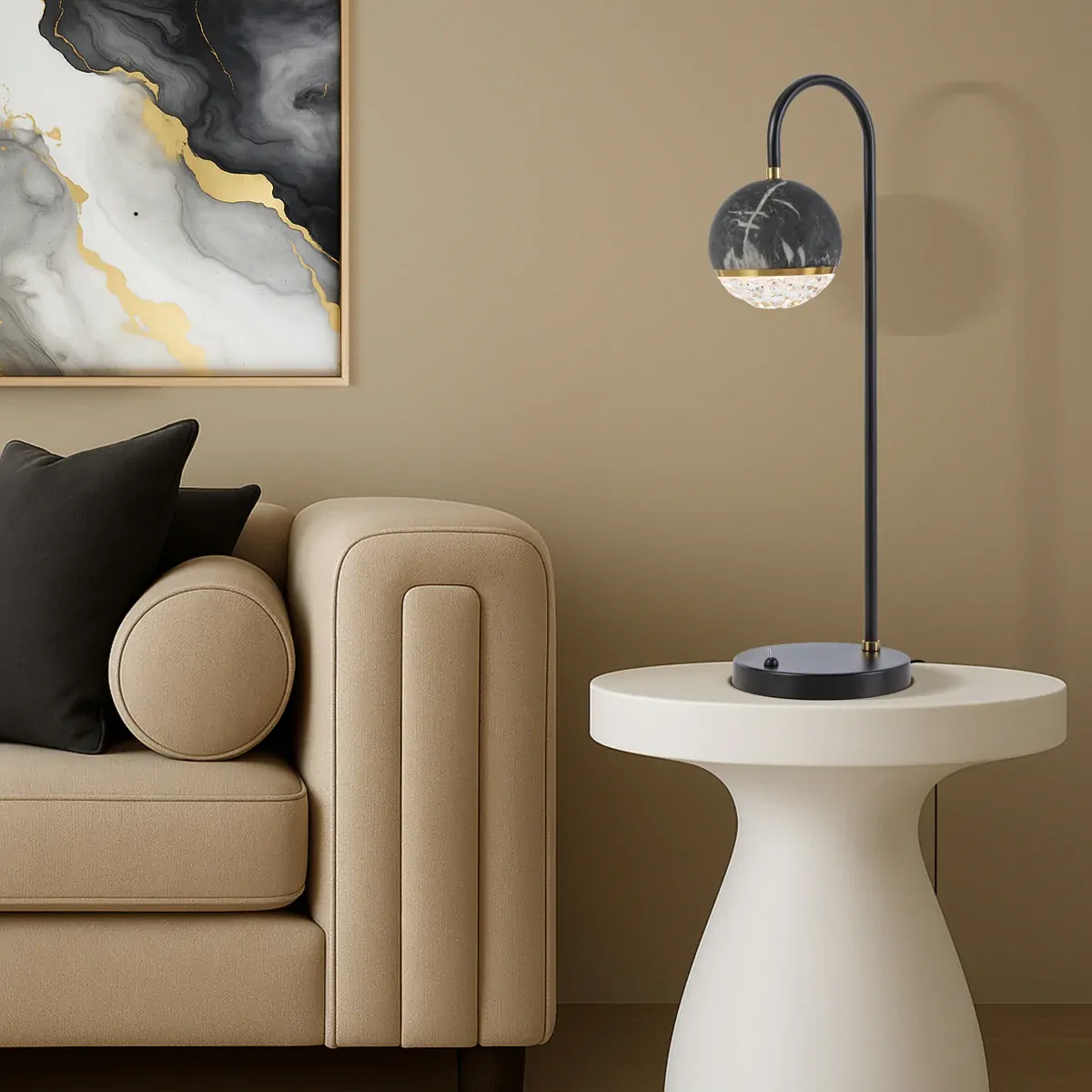 ONETA TABLE LAMP 6wG9 D:xxx H:155 BLACK MATT/BLACK MARBLE LOOK