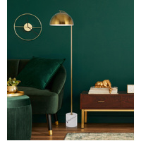The Ortez Floor Lamp is the classic vintage look, supplying lighting to the smaller surfaces of your home. The domed metal shade sits on an arched arm and the marble base offers stability and style to your home's décor. On/off switch located on the lamp's cord.