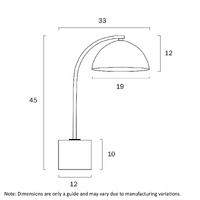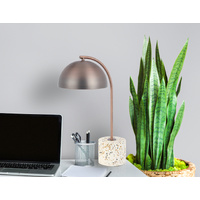 The Ortez Table Lamp is the classic vintage look, supplying lighting to the smaller surfaces of your home. The domed metal shade sits on an arched arm and the terrazzo base offers stability and style to your home's décor. On/off switch located on the lamp's cord.