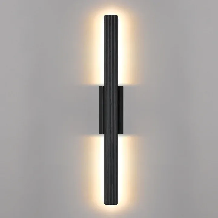 The Ostel exterior wall light features a clean, architectural design with subtle ridged detailing across the aluminium facade