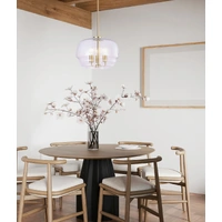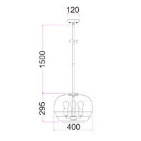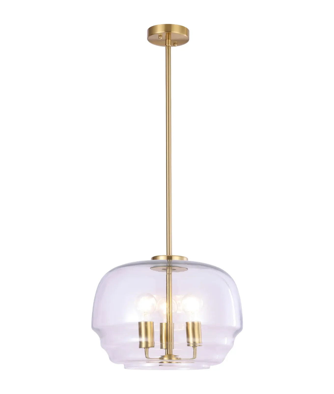 Description: PENDANT 3 x ES 40W Clear Glass Shade w/Brass Hardware & Rod Wine Glass OD400mm x H295mm 1.5m Rod WTY 1YR