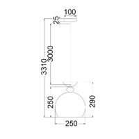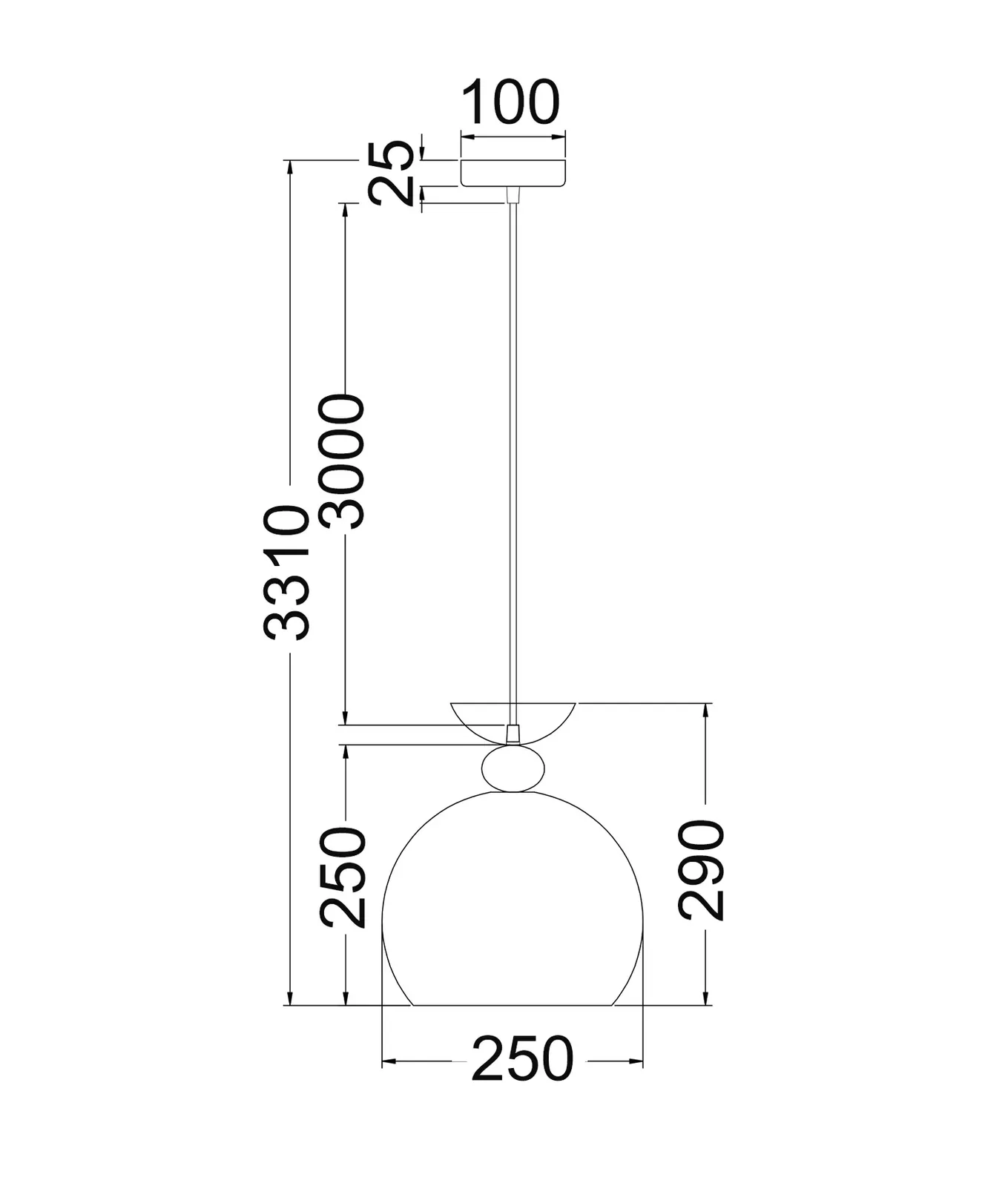 Description: PENDANT ES Iron 72W MATT BLK Wine Glass with Brass Highlight OD250 mm x H290mm 3m cable WTY 1YR