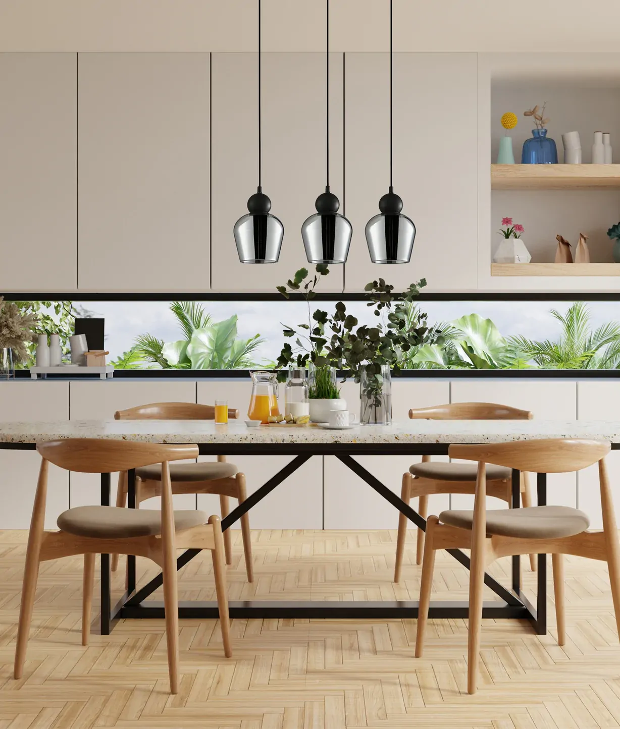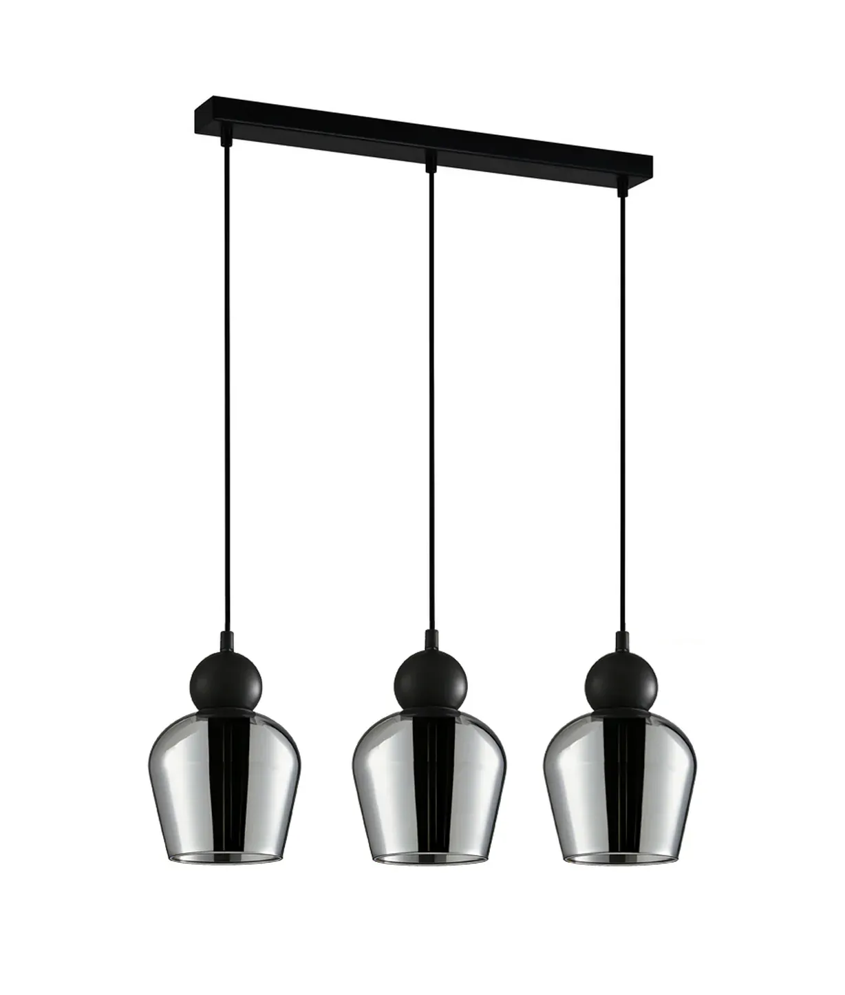 PENDANT ES x 3 72W BLK Smoke Glass (Mirror Finish) ELLIPSE SQ Base