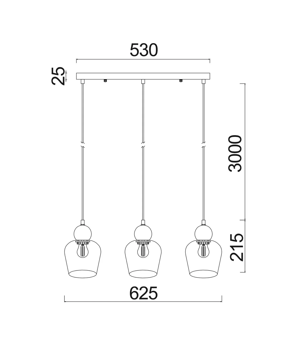 Description: PENDANT ES x 3 72W BLK Smoke Glass ELLIPSE SQ Base