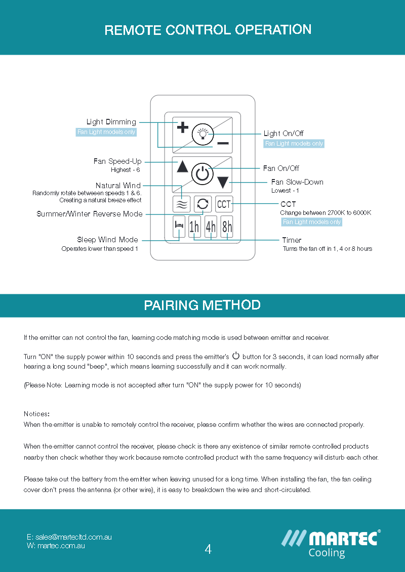 • Suitable for all Martec DC WIFI, Quantum DC & Zorro DC ceiling fans