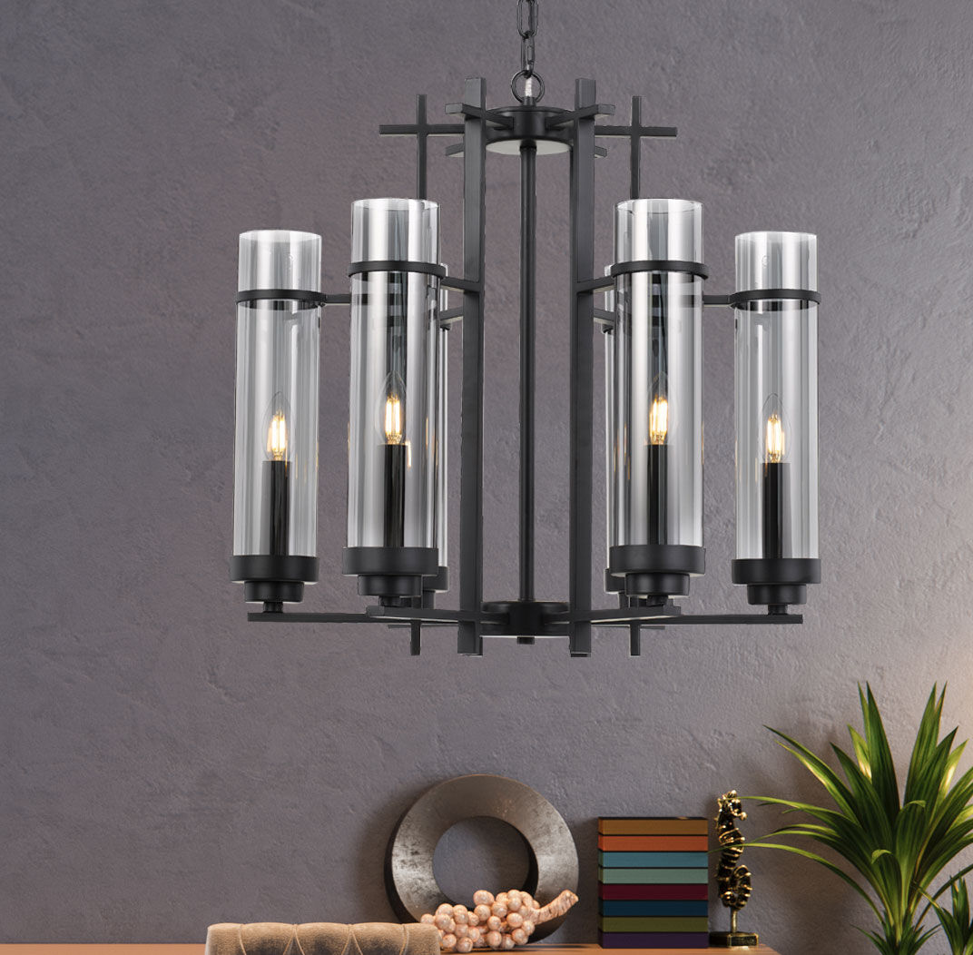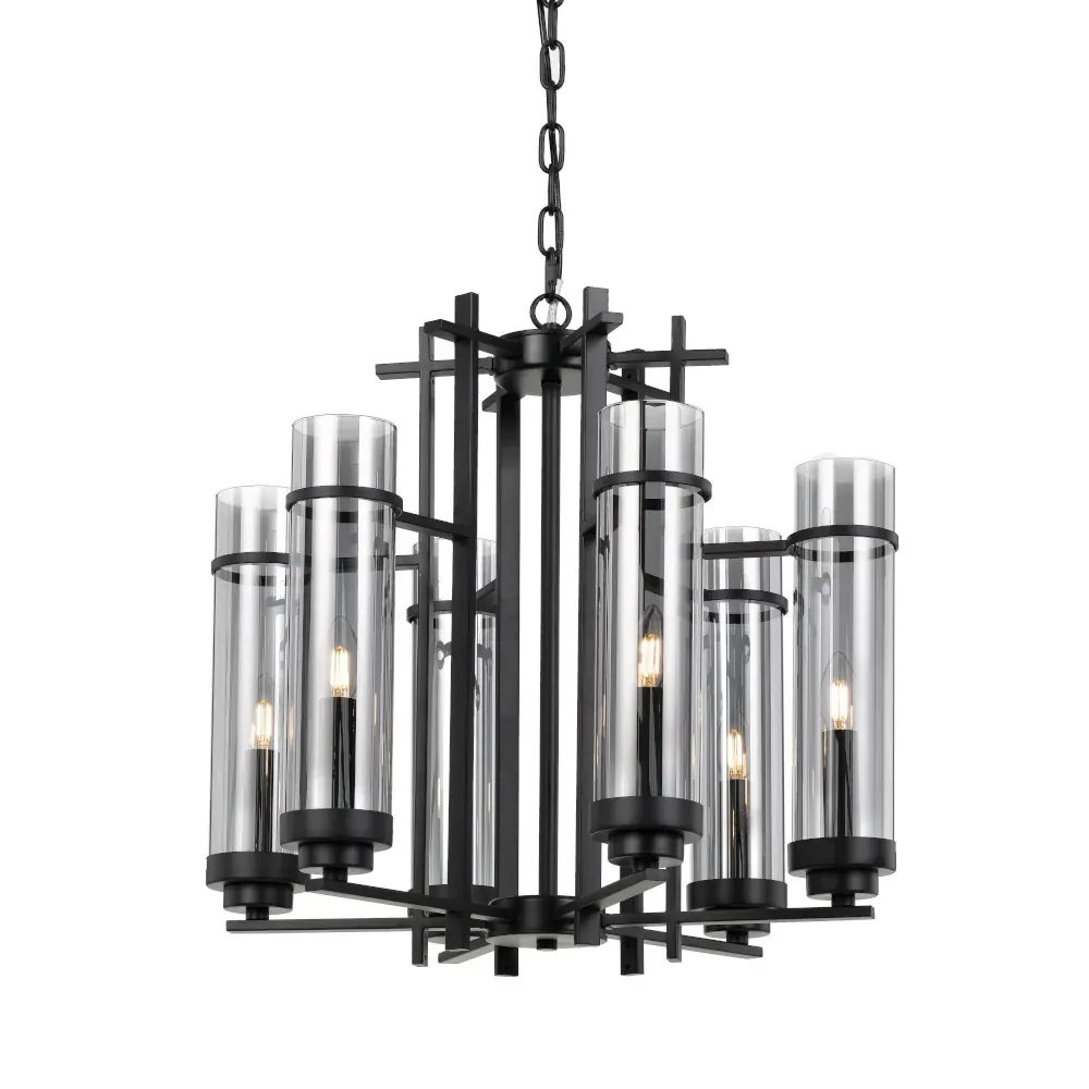 Burgess 6lt Pendant 6x25we14 D:650 H:Xxx Ant Black/Smoke Chain: 2m