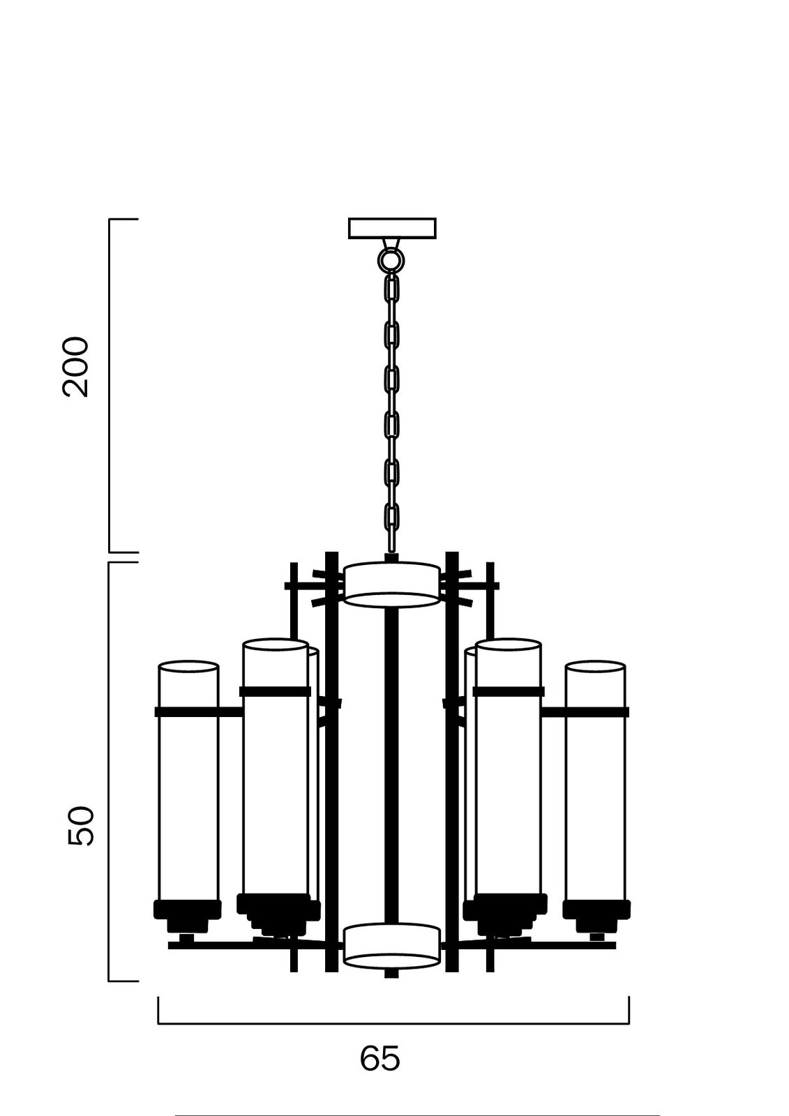 BURGESS 6LT PENDANT 6x25wE14 D:650 H:500 ANT BLACK/SMOKE CHAIN: 2M