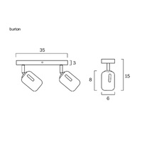 BURTON LED 2 BAR SPOT 2x6wCOB gu10 L: 360 WHITE / CH -3000k