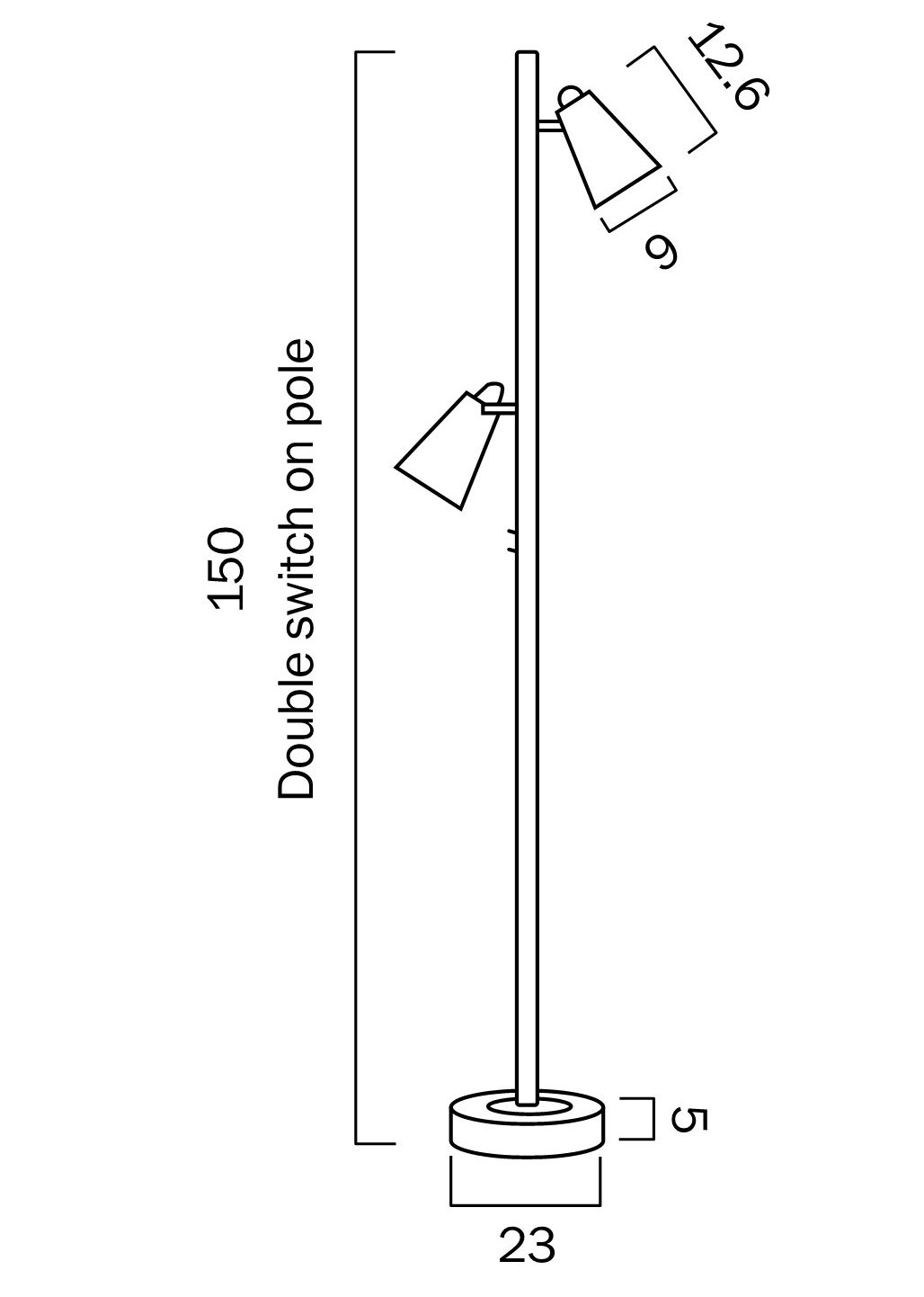DENY FLOOR LAMP 2x6wGU10max D:90 H:1500 DLB SWITCH ON POLE - BLACK/ BRASS MATT