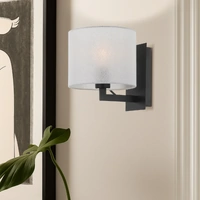 The Elgar indoor wall light is where timeless elegance meets modern charm. Featuring a sleek metal frame in your choice of nickel or black, it’s topped with a classic drum-shaped fabric shade that casts a warm, inviting glow. Whether you’re setting the mood for a cosy evening or adding a touch of sophistication to your space, the Elgar does it with effortless grace.